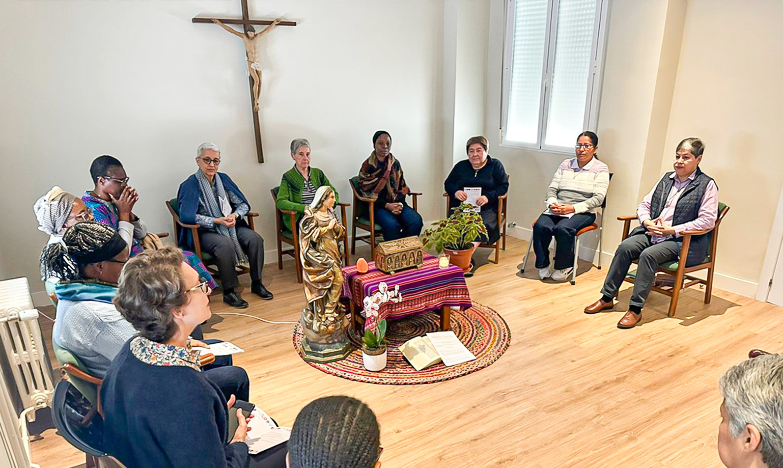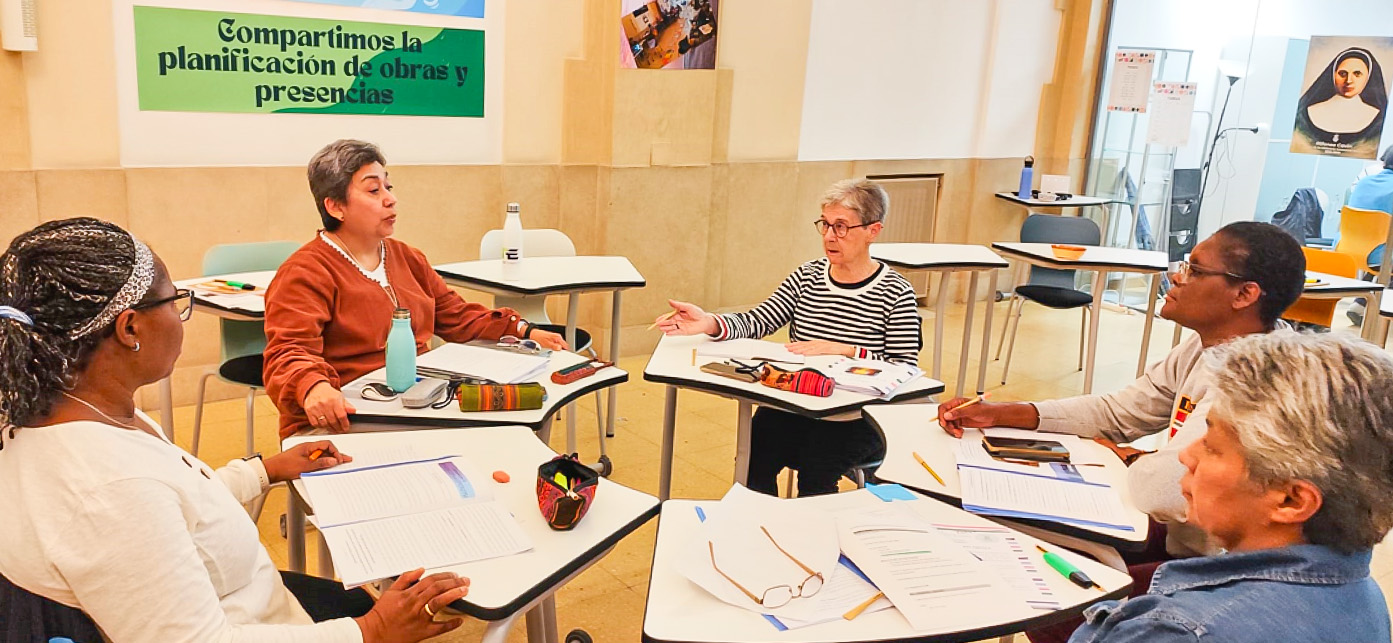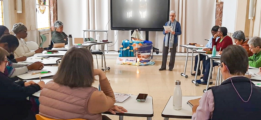 Por la tarde comenzamos con el taller de Liderazgo con compasión dirigido por las hermanas Isabel Vázquez y Mercè Montells, Consejera de la zona de África. Nos invitaron a explorar nuestra experiencia personal en este liderazgo. El segundo día por la mañana seguimos con el taller de liderazgo y en la tarde las hermanas Esmilce Santacruz, secretaria general, e Isabel Vázquez, nos presentan el itinerario del proceso de discernimiento de presencias y obras. Se trata de un camino donde cada una debe abrirse a la novedad del Espíritu, sin caer en el inmovilismo, ni en la improvisación. Al día siguiente, iniciamos la jornada con la oración y el compartir-cosecha del trabajo de grupo sobre el proceso de discernimiento. En la mañana, nos hacen la presentación de las fichas para tal proceso y lo trabajamos a nivel personal y de grupo. En la tarde, tras un tiempo de reflexión personal, compartimos en plenario con el método de Conversación en el Espíritu.