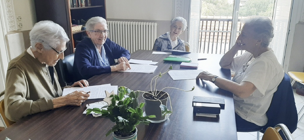 Cerramos la visita en Zaragoza y emprendemos viaje a Cataluña, para encontrarnos con las hermanas de esta parte de la zona. Ángela y Lucia, visitamos Barcelona-Bonanova, que forman una sola comunidad con Vilanova, estas dos presencias las conforman unas 30 hermanas. En Bonanova, viven la misión hacia adentro, ya que es una comunidad de enfermería, la atención, cuidado y acompañamiento a las hermanas en esta etapa de vida. Cada una de ellas, según sus posibilidades, colaboran en las actividades de la casa.