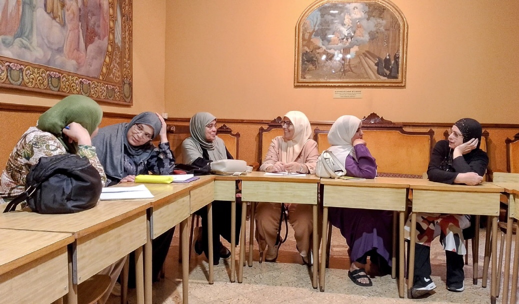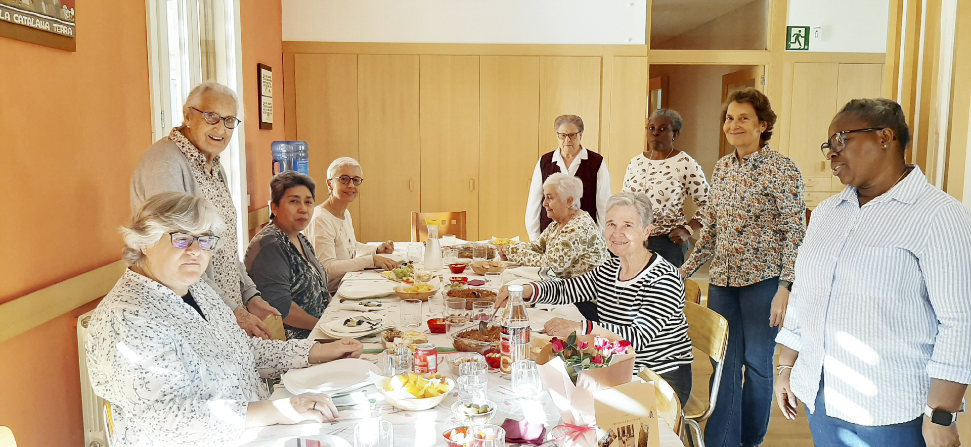 Esta vez, la comunidad de El Prat-Calle Valencia nos recibe con la acogida y cariño de familia. Dedicamos unos días para compartir la vida con las hermanas de estas dos presencias. Calle Valencia, como conocemos a esta comunidad desde hace años, es también sede de la casa general. Aquí están Lourdes Taberner y Mª Paz de Lama. Mª Paz hace voluntariado en el “hospital campaña” en la parroquia Santa Ana, colaborando en la preparación del desayuno para ofrecer a las personas que viven en situación de calle y acuden a ese lugar en busca de alimento. En el Prat están Begoña Burguete, Mª Carmen Rojas y Rosa Álvarez. Aquí continúa con las actividades en Saó-Prat con las personas migrantes, facilitando clases en español a las mujeres, y también hacen otro servicio de voluntariado en la recepción de la institución.
