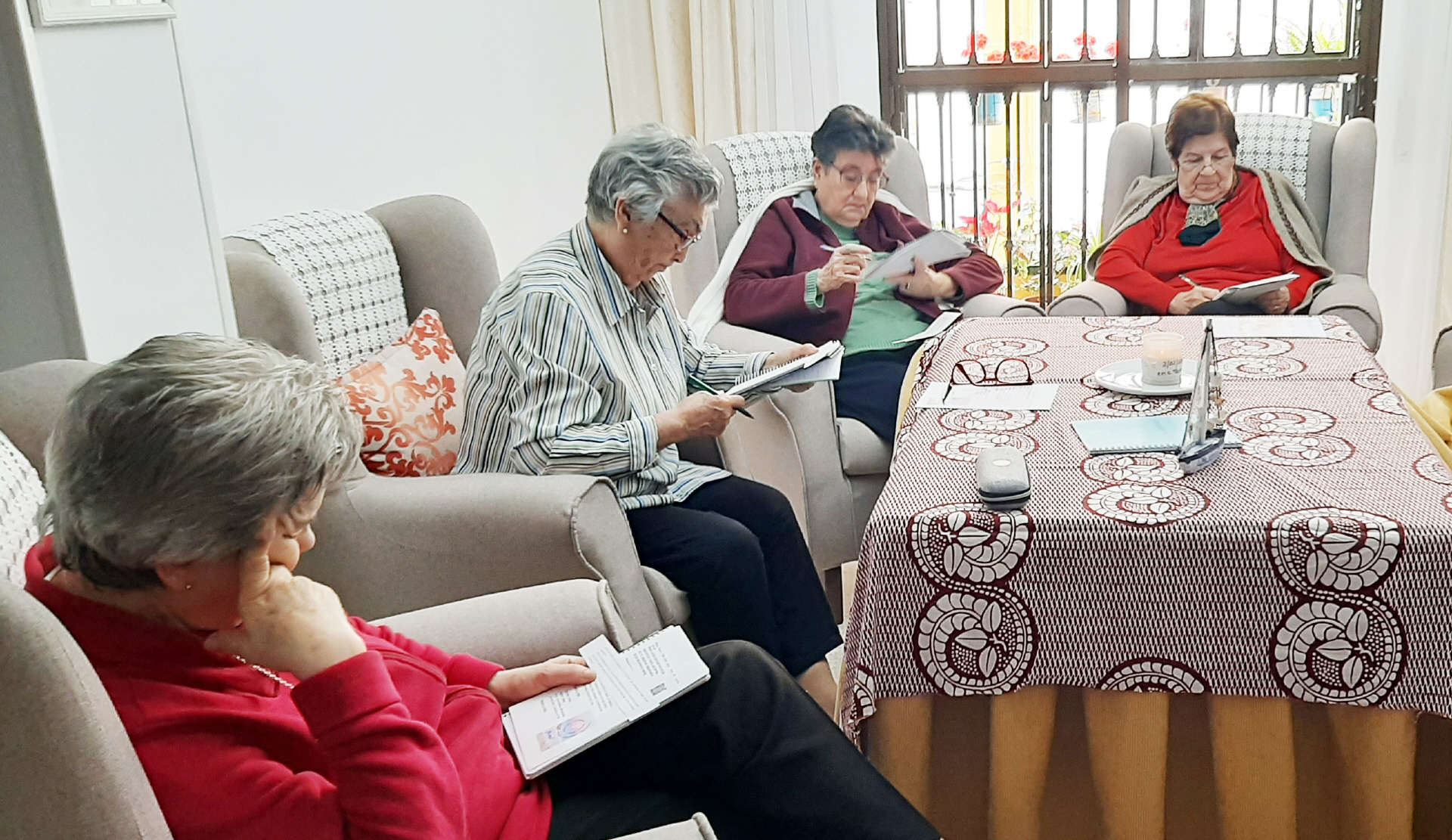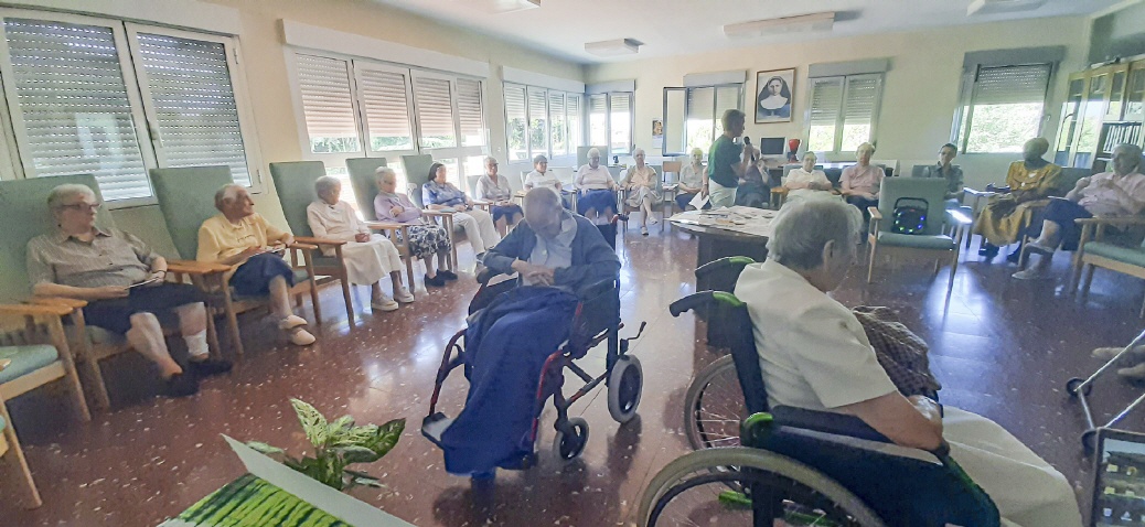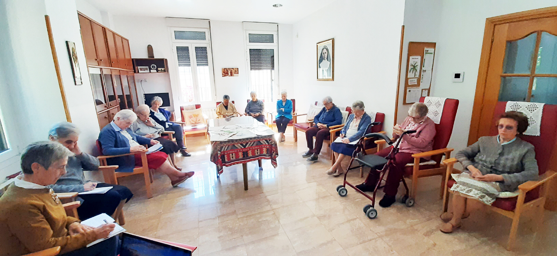 Continuamos nuestra ruta, dejamos el sur y tras unas horas de tren, llegamos a Madrid. Seguimos la visita a la comunidad de Pozuelo de Alarcón, junto con Rosa Álvarez; nos reciben las hermanas con la acogida y el cariño de siempre, deseosas de compartir momentos de familia. Es una comunidad de 31 hermanas. La misión de la misma es al interno de ésta, la atención, el acompañamiento y cuidado de las hermanas, ya que están en una residencia para personas mayores. Al mismo tiempo cuidan de manera especial la pastoral en la misma residencia, compartiendo con miembros de otras congregaciones, y señoras que residen en ella. La eucaristía diaria les une y nutre la vida, además de otras actividades de formación que comparten como MIC, y también con las residentes. Las experiencias de vida misión compartidas en estos días en Pozuelo, anima a amar cuidando, a acompañar, a seguir haciendo y recibiendo el bien.
