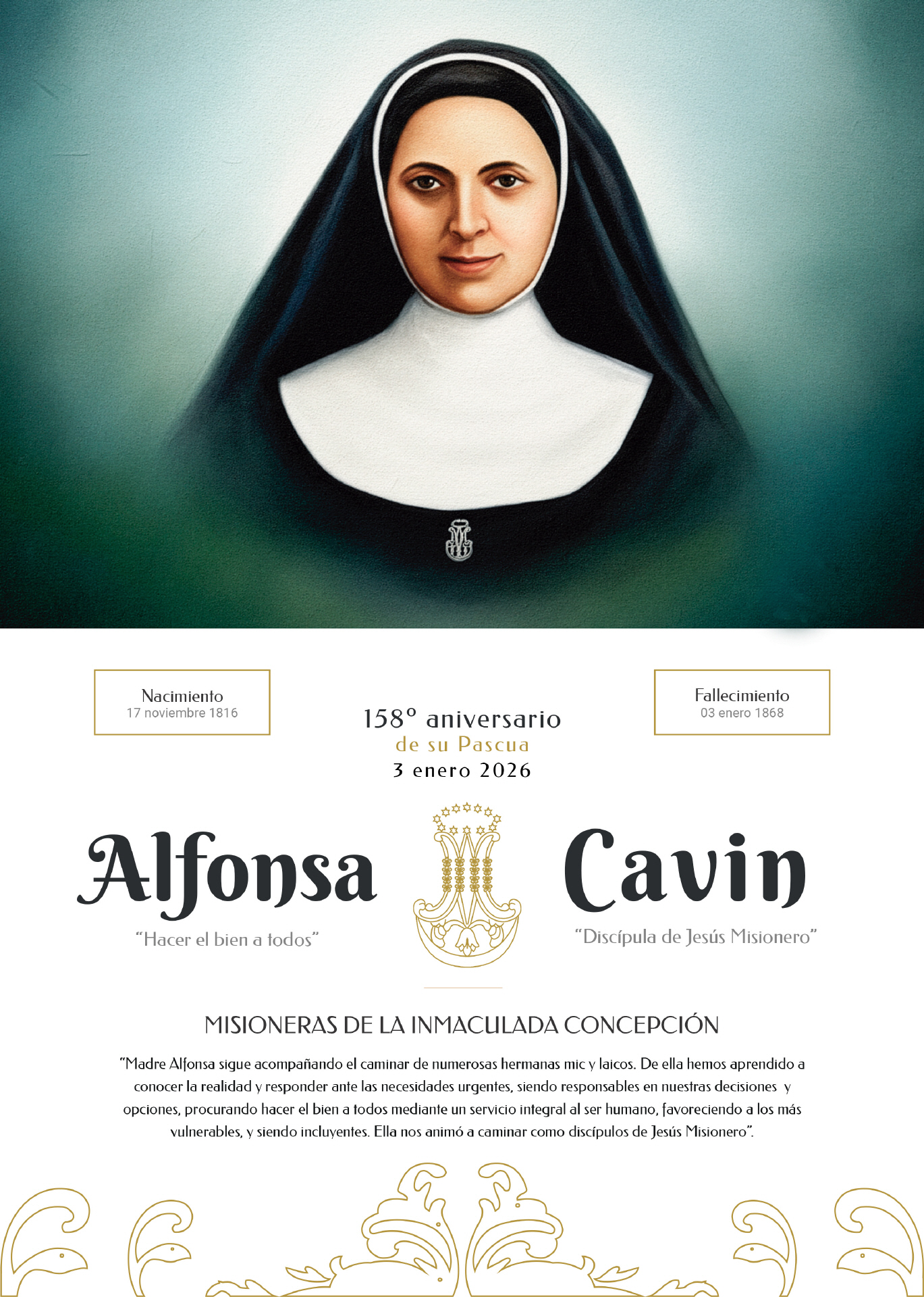 A continuación podréis ver el vídeo realizado para conmemorar el 158 aniversario de la Pascua de nuestra fundadora, Alfonsa Cavin Millot. Su sueño sigue vigente hoy día, y su partida hacia la otra orilla no ha evitado que su mensaje, su fuerza y su carisma Mic persistan en el tiempo, teniendo su eco en nuestra misión en el mundo actualmente.