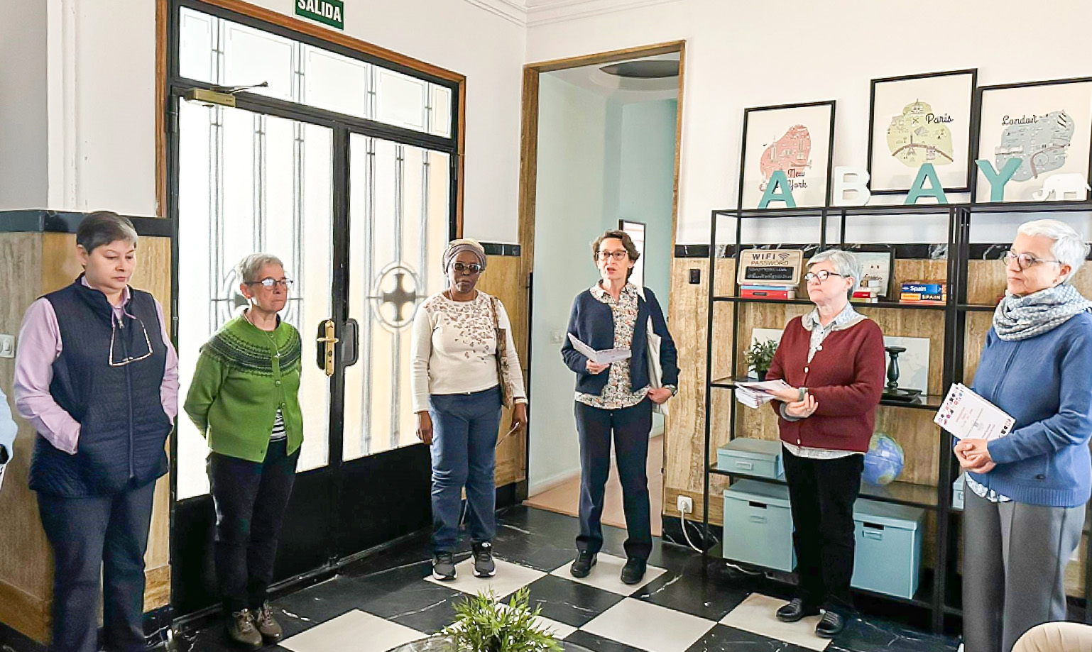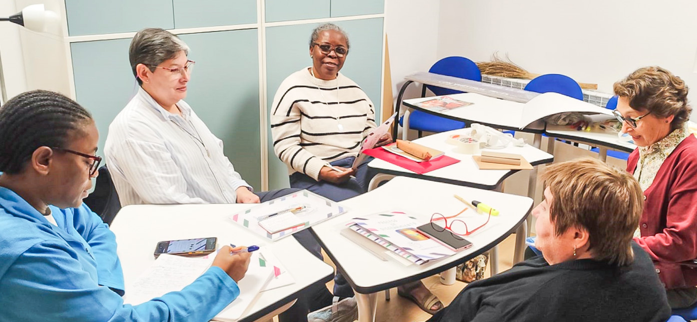 Por la tarde comenzamos con el taller de Liderazgo con compasión dirigido por las hermanas Isabel Vázquez y Mercè Montells, Consejera de la zona de África. Nos invitaron a explorar nuestra experiencia personal en este liderazgo. El segundo día por la mañana seguimos con el taller de liderazgo y en la tarde las hermanas Esmilce Santacruz, secretaria general, e Isabel Vázquez, nos presentan el itinerario del proceso de discernimiento de presencias y obras. Se trata de un camino donde cada una debe abrirse a la novedad del Espíritu, sin caer en el inmovilismo, ni en la improvisación. Al día siguiente, iniciamos la jornada con la oración y el compartir-cosecha del trabajo de grupo sobre el proceso de discernimiento. En la mañana, nos hacen la presentación de las fichas para tal proceso y lo trabajamos a nivel personal y de grupo. En la tarde, tras un tiempo de reflexión personal, compartimos en plenario con el método de Conversación en el Espíritu.