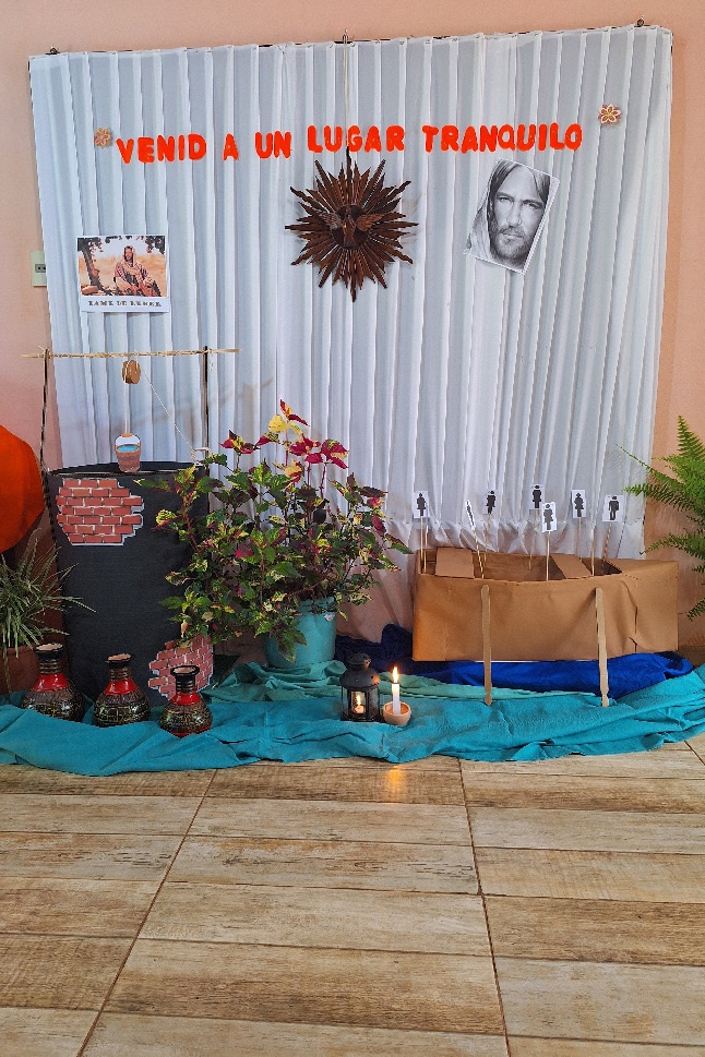 Otro momento significativo del retiro fue orar desde Mc. 6, 30-34, "Venid también vosotros aparte a un lugar solitario, para descansar un poco". Nos subimos en la barca con la invitación del maestro “Jesús” y nos disponemos a un encuentro personal con él.