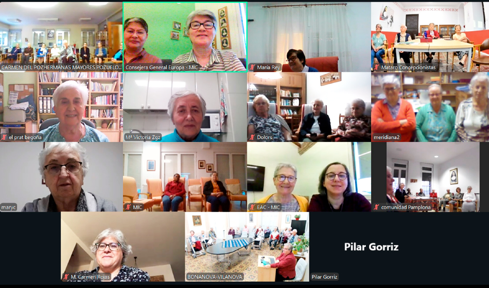 Continuamos nuestra ruta, dejamos el sur y tras unas horas de tren, llegamos a Madrid. Seguimos la visita a la comunidad de Pozuelo de Alarcón, junto con Rosa Álvarez; nos reciben las hermanas con la acogida y el cariño de siempre, deseosas de compartir momentos de familia. Es una comunidad de 31 hermanas. La misión de la misma es al interno de ésta, la atención, el acompañamiento y cuidado de las hermanas, ya que están en una residencia para personas mayores. Al mismo tiempo cuidan de manera especial la pastoral en la misma residencia, compartiendo con miembros de otras congregaciones, y señoras que residen en ella. La eucaristía diaria les une y nutre la vida, además de otras actividades de formación que comparten como MIC, y también con las residentes. Las experiencias de vida misión compartidas en estos días en Pozuelo, anima a amar cuidando, a acompañar, a seguir haciendo y recibiendo el bien.