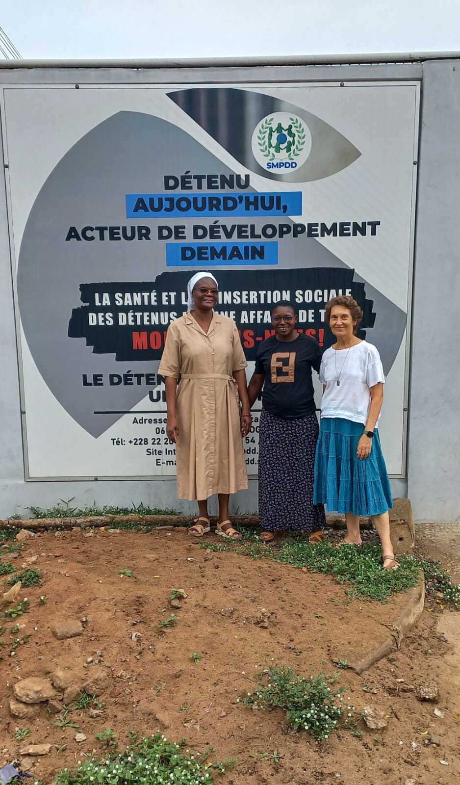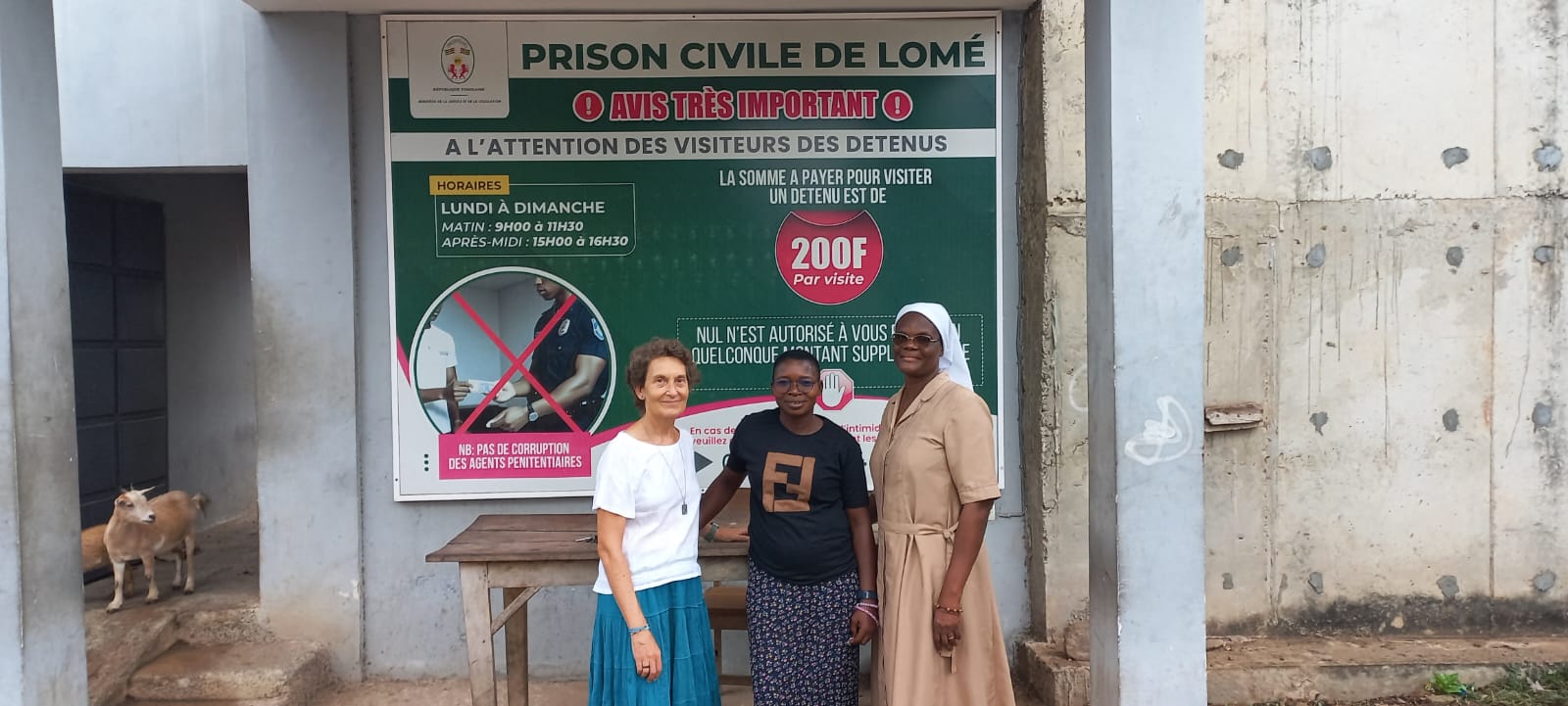 Este tiempo relacionándonos con la comunidad de Lomé ha sido una gran oportunidad para acercarnos a la vida de cada una de las hermanas, a la realidad y a la misión que, desde ese cuidar amando, intentan dar respuesta. Hemos tenido ocasión junto con Charité Wassane, joven que está haciendo experiencia con nosotras, de acercarnos a la prisión civil de Lomé donde, desde hace ya algunos años, Catherine dedica parte de su tiempo a dar catequesis, acompañando hombres y mujeres en algún juicio, escuchándoles en sus vivencias y preocupaciones y celebrando con ell@s la eucaristía de algunos domingos. Junto a ella también hemos visitado el hospital general donde los presos que están enfermos son asistidos por los médicos. A ellos también les dedica su atención, escucha atenta y les proporciona y gestiona, en la medida de sus posibilidades, los medicamentos que necesitan ya que la mayoría de ellos no tienen nadie quien les cuide. Hemos podido captar el cariño que le tienen por su saber estar, sencillez y manera de acercarse a tod@s y cada un@. Junto a esta labor participa en el Consejo Diocesano de Justicia y Paz de la diócesis de Lomé. Agradecemos esta presencia de Catherine en la lucha por la justicia, buscando dentro de lo posible, ir dignificando la vida de la gente de este entorno.