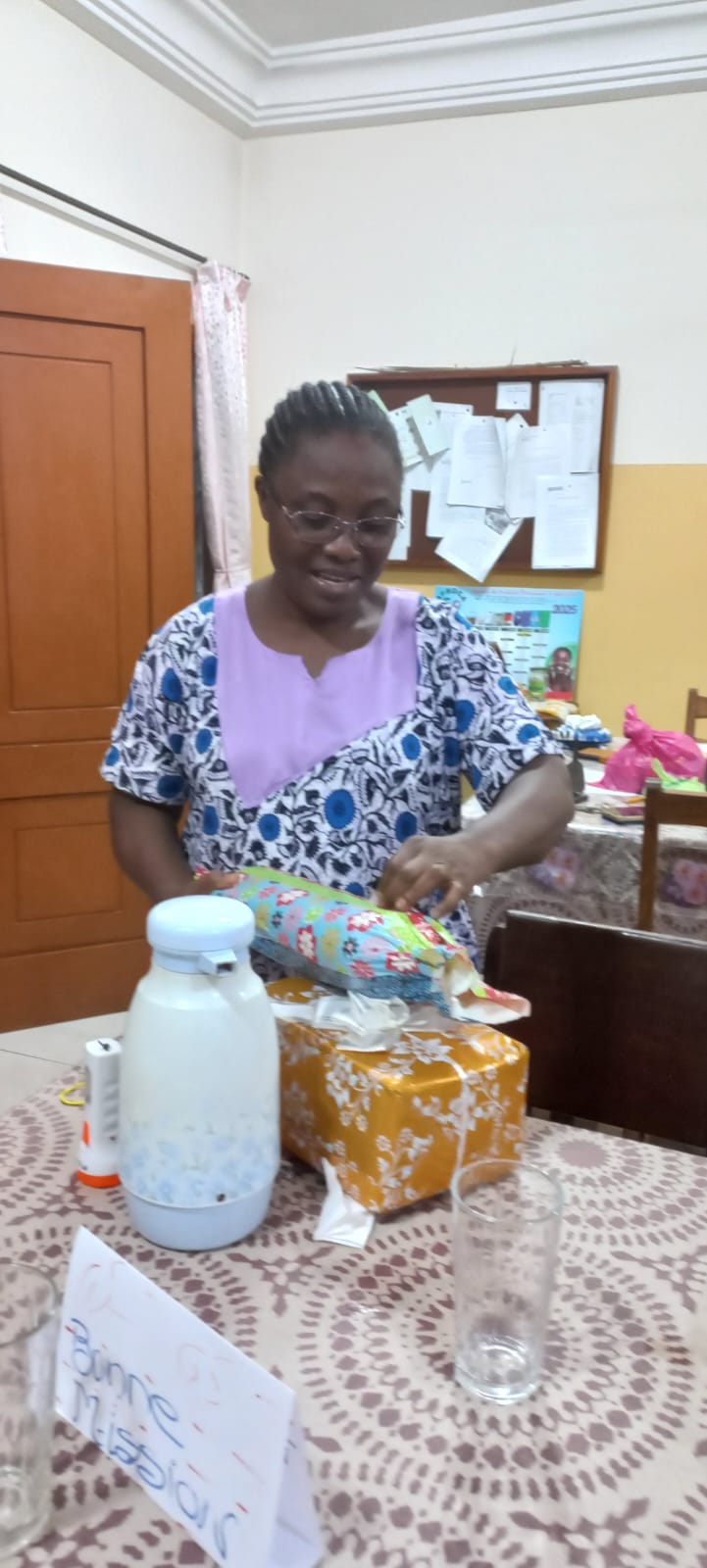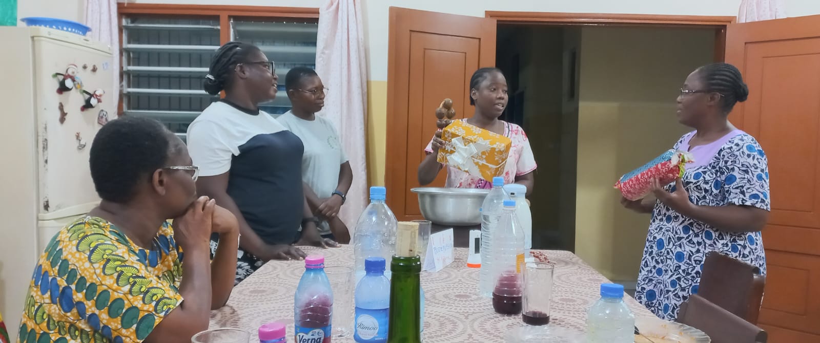 El día 30 de septiembre, después del tiempo pasado entre las hermanas de la comunidad de Ngandajka, en la RDC, Mercè Montells, Consejera general, llega a Togo para continuar la visita por las comunidades de Lomé y Afagnan. El reencuentro con las hermanas de Lomé ha sido una gran fiesta, donde la alegría, el entusiasmo, las sonrisas y los abrazos nos hablan de lazos de familia que se van entretejiendo entre nosotras. Se percibe con fuerza el dinamismo y la savia joven de la comunidad. Este mismo día nuestra hermana Gwladys Catherine Agbognito celebraba sus bodas de plata en nuestra familia MIC. Agradecemos su fidelidad, vida y entrega a la misión. Con el corazón en fiesta y en acción de gracias por Catherine compartimos nuestra comida con los hermanos Franciscanos y otr@s amig@s de la parroquia.