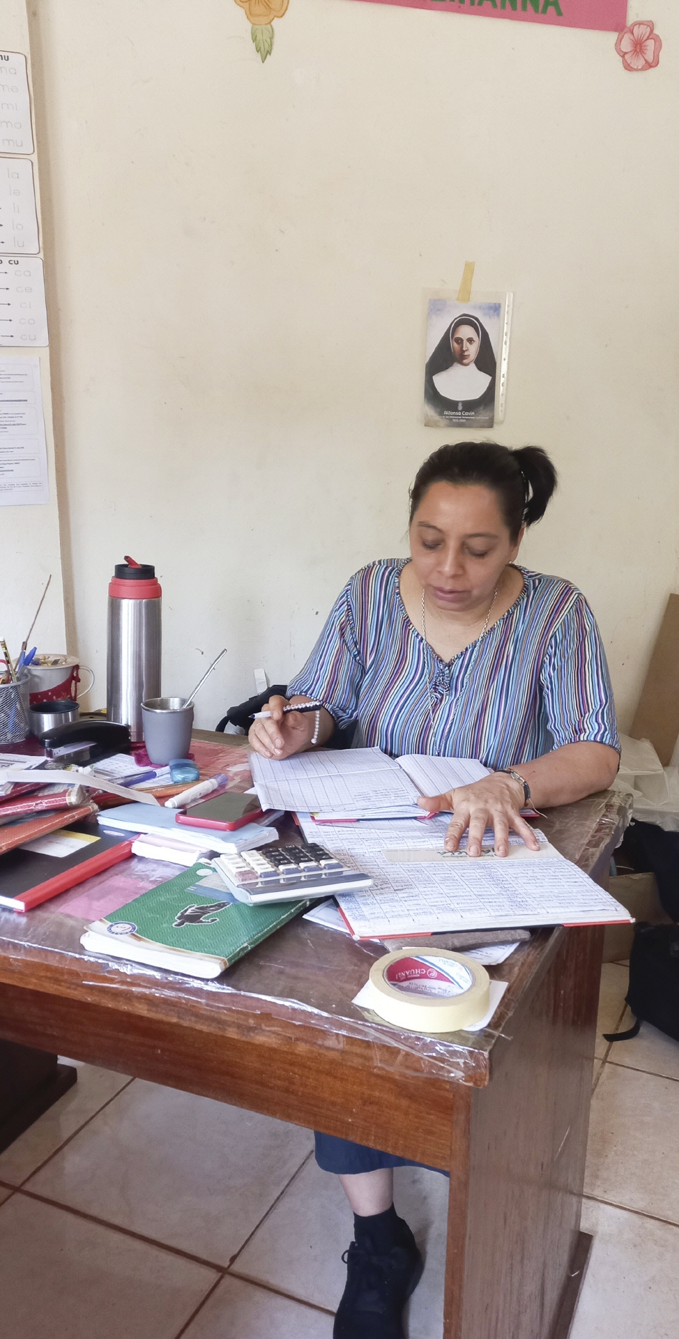 Desde el compartir diario y de una manera sencilla y natural nos acercamos a la misión primordial de las hermanas de la comunidad y a la que dedican toda su jornada: la dirección y gestión del colegio MIC “La Robertana” con todas las etapas escolares. Es Nathalie quien, con su energía joven, asume la dirección general del colegio y la etapa de primaria, Josephine coordina, desde su experiencia, la etapa de infantil, y Claire, manteniendo la calma y serenidad, la etapa de secundaria. Carolina es quien, con todo detalle y vitalidad, lleva lo que corresponde a la secretaria del colegio.