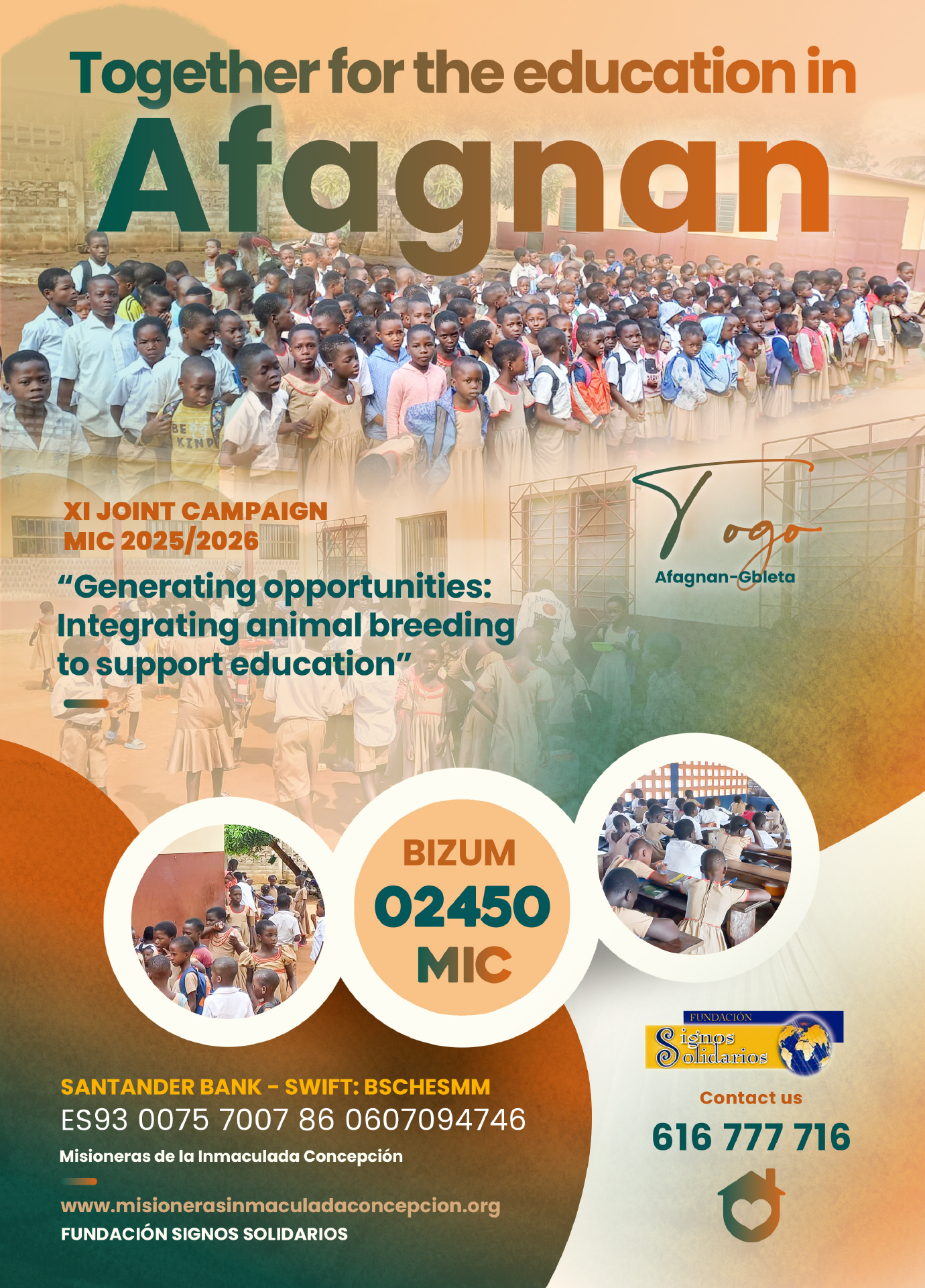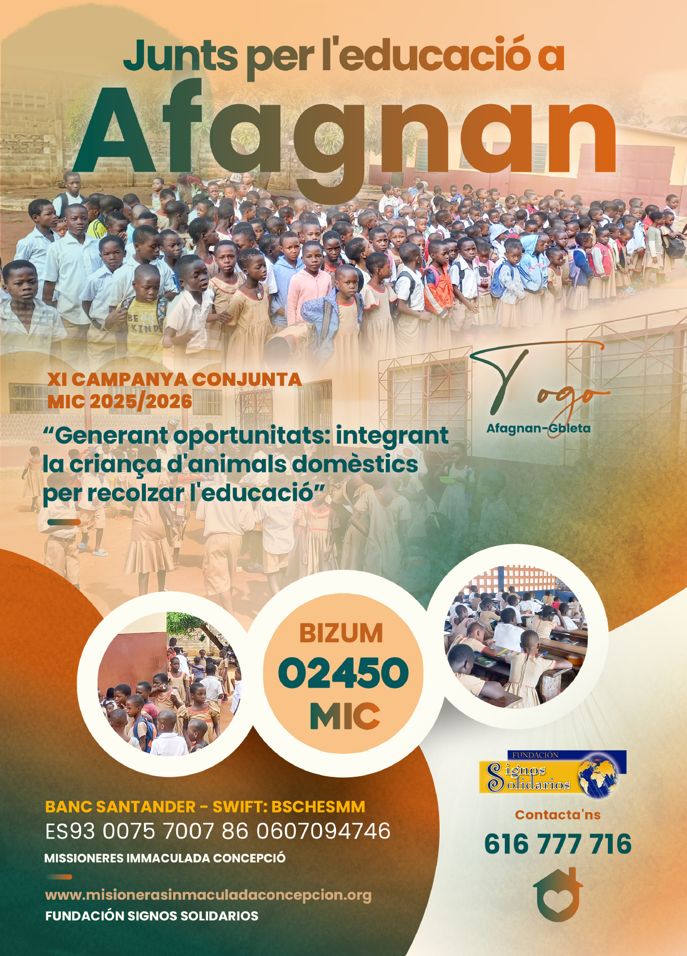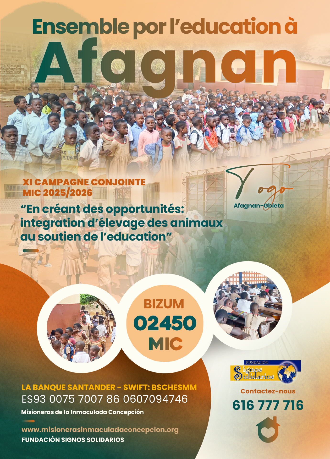 Desde la Fundación Signos Solidarios os mostramos la última campaña conjunta 2025/2026 con las Misioneras de la Inmaculada Concepción, diseñada para aplicarla en la misión mic de Afagnan-Gbleta (Togo).